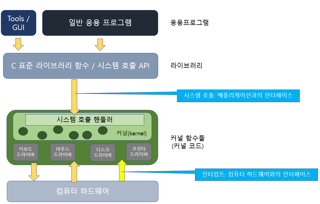 응용 프로그램에서 커널에 작성된 함수를 호출하는 다른 방법이 제공되는데, 그것이 바로 시스템 콜(system call)이다.